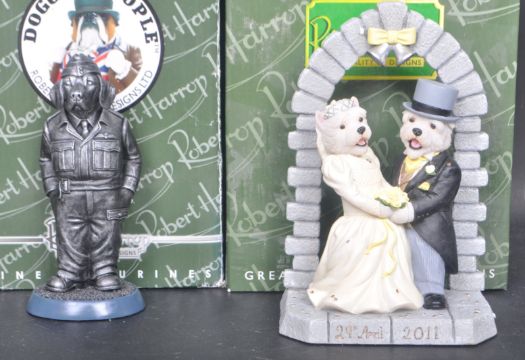 Doggie People – Robert Harrop – A collection of four figurines comprising of DP251BLA Blue Staffordshire Bull Terrier Army Air Corps, DPYP14 Beagle RAF Battle of Britain 70th Anniversary Specail Patina Edition, West Highland Terriers I Will Royal Wedding special edition, DP251BM Black Staffordshire Bull Terrier Royal Marines Commando . Highly detailed resin statues. Statue appears mint, with no damage. Boxed. Note; from a large collection of Robert Harrop & other statues / figurines. Condition is stated within each description, however buyers are reminded that such statements are not forensic reports and all items will remain sold 'as is'. As a rule, statues do appear mint and undamaged, but this is not guaranteed. Boxes range in condition, and some have wear from storage. In all instances buyers are required to satisfy themselves. Certificates / paperwork are present if photographed, if there are no photographs of certificates then one isn't present. Largest measures 20cm