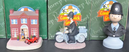 Camberwick Green – Robert Harrop – a collection of x 5 statues / figurines. To include; Capt Flack CG69, Dr Mopps House CGM07,PC McGarry CG32, PC McGarry Bust CGY03, Dr Mopp Thrushes CG93 . Measures 10cm tall.