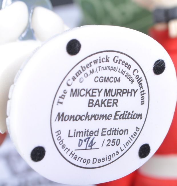 Camberwick Green Monochrome Edition & others – Robert Harrop – Collection comprises of CGCS09 Lord Belborough & Winnie Farley, CGMC04 Mickey Murphy Baker, CG124 Mrs Dingle Chigley Episodes, CGL08 Captain Snort. Highly detailed resin statue based on the classic children’s animated series. Statue appears mint, with no damage. Boxed. Note; from a large collection of Robert Harrop & other statues / figurines. Condition is stated within each description, however buyers are reminded that such statements are not forensic reports and all items will remain sold 'as is'. As a rule, statues do appear mint and undamaged, but this is not guaranteed. Boxes range in condition, and some have wear from storage. In all instances buyers are required to satisfy themselves. Certificates / paperwork are present if photographed, if there are no photographs of certificates then one isn't present. Largest measures 40cm.