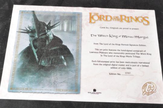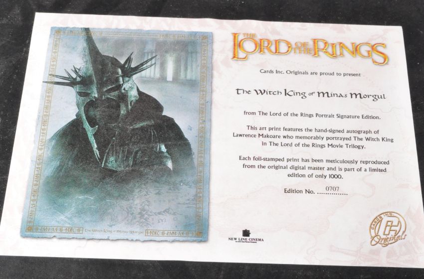 Lord Of The Rings - Lawrence Makoare ( The Witch King ) autograph - an original Cards Inc Limited Edition lithographic art print of Makoare signed neatly in black ink to the bottom portion of the print. Complete with certificate of authenticity and tube packaging. Limited to 1000 prints only.