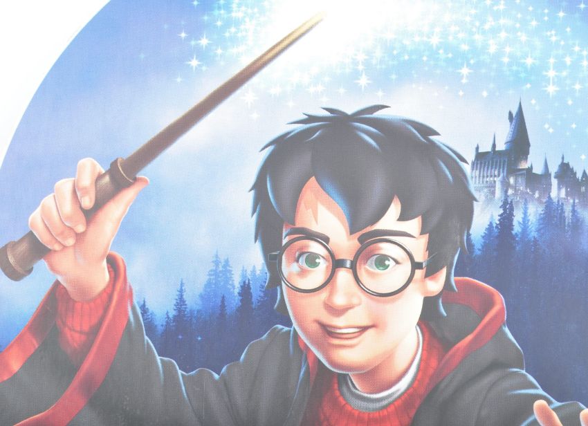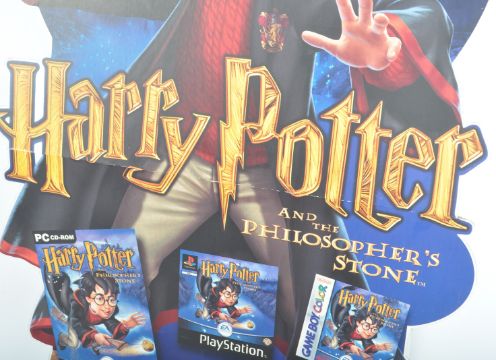 An original EA Games ex-shop display / advertising sign promoting Harry Potter And The Philosopher's Stone for PC, Playstation, Gameboy Advance and Gameboy Colour. The cardboard sign that folds in two measures approx 150cm tall.