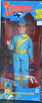 A collection of x3 vintage Carlton made Thunderbirds super marionette puppets comprising The Hood (x2) and Virgil. Contents appearing mint and unused with strings still attached to inner packaging.