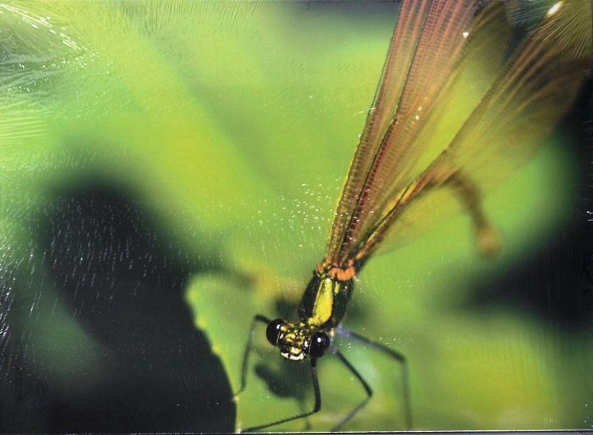 A set of four contemporary large photographic prints on canvas. Depicts scenes of wildlife including an Komodo Dragon, Otter, Mushrooms, Dragonfly. Each set within natural scenes. Measures approx; 1010mm x 750mm.