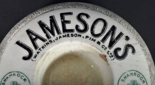 Jameson's Dublin - An early 20th Century Irish advertising point of sale ceramic match holder and striker of squat globular form with painted notation to the top reading 'Jameson's Dublin Invalid Stout, Shamrock Trade Mark'. Makers marks to the base for J. A. Campbell, 64 Royal Avenue Belfast. Measures approx; 5cm x 11cm diameter.