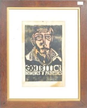 A 20th Century framed and glazed Exhibition Drawings & Paintings poster featuring a gentleman with shades of pink to his face. Poster measures approx; 440mm x 300mm. Frame measures approx; 72cm x 60cm.
