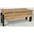 A retro 20th Century brutalist / rustic made coffee table of rectangular form having a pine multi segmented top with blue painted strips to the sides. All raised upon ebonised H-supports. Measures approx; 43cm x 97cm x 50cm.