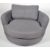 Rondo - A group of four large contemporary Swedish designer swivel lounge armchairs / sofa chairs of circular form having half raised curved back with cushions. All upholstered in grey raised on black metal swivel bases. Labels present to the base. Each measures approx; 60cm x 117cm diameter.