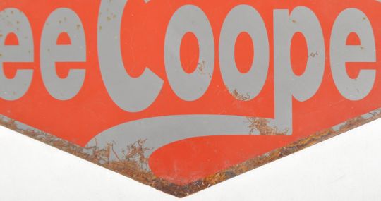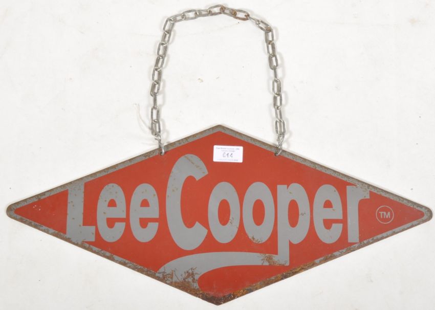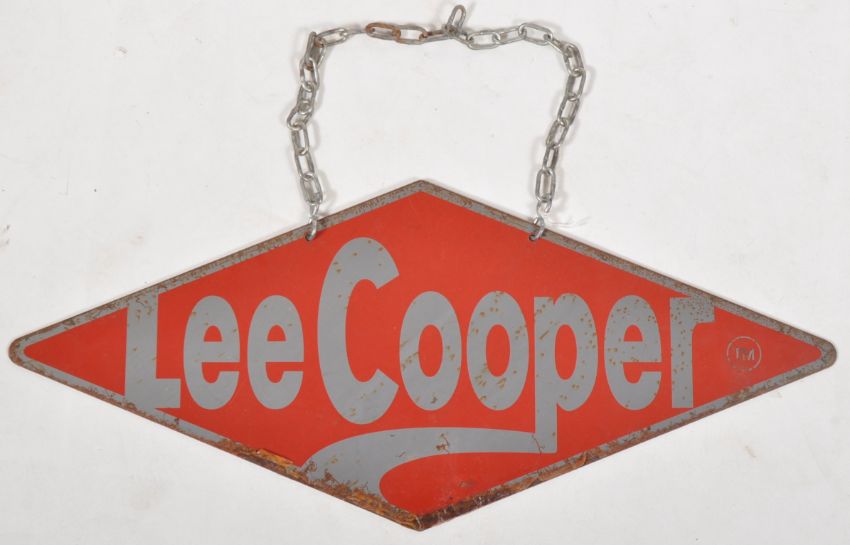 Lee Cooper - A retro vintage 20th Century advertising point of sale clothing shop display metal Double-Sided Diamond Shaped ' Lee Cooper ' Sign on Hanging Chain. Measures approx; 55cms long