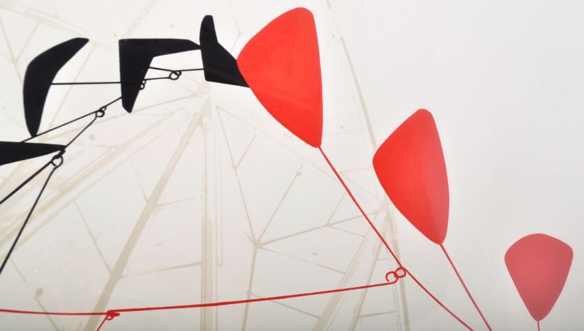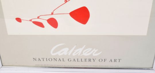 After Alexander Calder (b. 1898-1976) - Untitled 1976 - A vintage 20th Century framed and glazed advertising promotional exhibition poster for the National Gallery. The poster featuring Calder's iconic Mobile in red, blue and black. Framed and glazed. Measures approx; 94cm x 61cm.