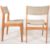 Johannes Andersen - Uldum Møbelfabrik (believed) - A matching set of four retro 20th Century teak framed dining chairs having a padded shaped backrests with boomerang supports terminating to the back legs. Padded seat rests with beige upholstery throughout with each raised on tapering supports. Wear commensurate with age, mostly to the upholstery, overall good. Each measures approx; 83cm x 49cm x 47cm.