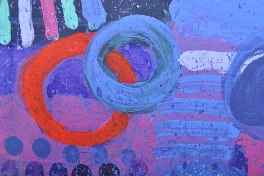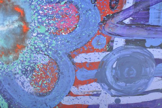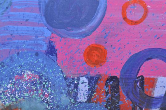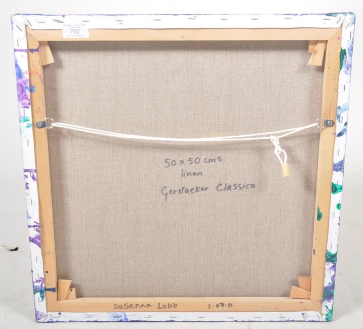 Susanna Lobb (British) - A contemporary oil on canvas abstract painting with dark blue ground and abstract patterns throughout. Signed to the back and side of the canvas and dated 1/07/11. Measures approx; 50cm x 50cm.