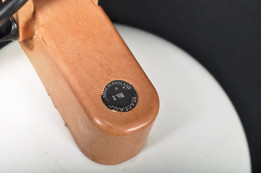 Terence Conran - Habitat - Mac Lamp No.8 - A retro vintage 1960's adjustable anglepoise desk / table work lamp light. The lamp having a white conical shade raised on a twin faux wood arm support and white finished base. Sold as untested by ourselves. Measures approx; 55cm.