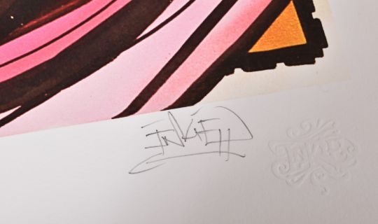 Inkie (British, b.1969) Ooh La La... Limited edition giclée print on 280gm paper Signed and numbered 45/50 in pencil with embossed stamp Framed and glazed 74 x 54 cm (29 x 21 in) Inkie is a London based painter and street artist, originally from Clifton, Bristol. Inkie began working as part of Crime Incorporated Crew (CIC)or the Crime inc.crew in 1983, along with Felix and Joe Braun. He was the head of the many artists arrested in 1989 during "Operation Anderson", the UK's largest ever graffiti bust. He arranged 1998's Walls on Fire event with Banksy, on the site of the future At-Bristol centre. He has subsequently worked in the video game industry, including some time as head of creative design at Sega. This lot is also sold subject to Artists Resale Rights, details of which can be found in our Terms and Conditions.