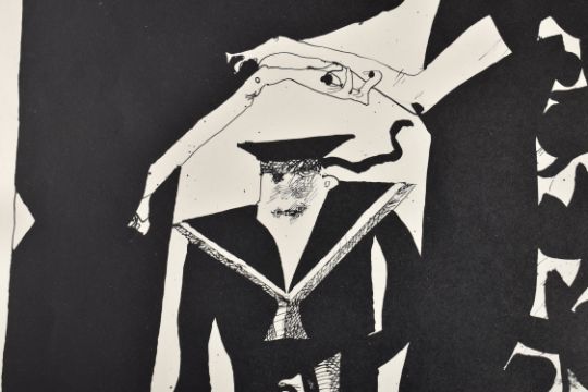 Horst Janssen (14 November 1929 – 31 August 1995) was a German draftsman, printmaker, poster artist and illustrator. He had a prolific output of drawings, etchings, woodcuts, lithographs and wood engravings. Janssen was a student of Alfred Mahlau at the Landeskunstschule Hamburg. He first published in the newsweekly Die Zeit in 1947. In the early 1950s, he started working in lithography, on an initiative of Aschaffenburg paper manufacturer Guido Dessauer, using the technical facilities of a coloured paper factory. The first retrospective of Janssen's drawings and graphic works was shown in 1965, first in the kestnergesellschaft Hanover, then in other German cities and in Basel. In 1966, he was awarded Hamburg's Edwin Scharff Prize. International exhibitions followed. In 1968, he received the Grand Prize in graphic art at the Venice Biennale; in 1977, his works were shown at the documenta VI in Kassel.