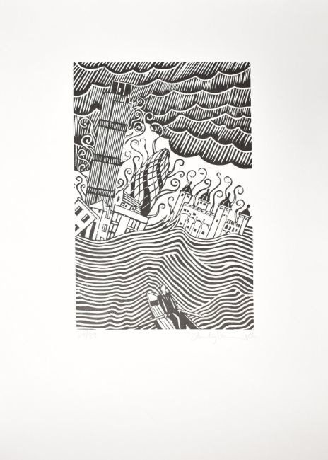 Stanley Donwood (British, b. 1968) London Views – Gherkin, 2006 Screen print Signed, numbered 24/33 and dated in pencil 53 x 58 cm (21 x 23 in) Stanley Donwood is a British artist and writer best known for his work created for the band Radiohead, for whom he has designed all of their album covers and promotional materials. Among his most famous works is the cover art for the album Hail to the Thief (2003), a cartographical text-based image inspired by the work of graphic designer Paula Scher. Donwood is the pseudonym of Dan Rickwood, who was born on October 29, 1968 in Essex, England and studied at the University of Exeter where he met Radiohead frontman Thom Yorke. Yorke asked Donwood to contribute art for Radiohead’s original My Iron Lung EP (1994), initiating a lifelong collaboration between the band and the artist. Donwood’s illustrations cheekily address socio-political issues, drawing comparisons to street artists Insa and Banksy. In 2002, he was awarded a Grammy for the packaging of Radiohead’s Amnesia album. In addition to art, Donwood has written several books of short stories, including Humor (2014). He lives in Bath, England. This lot is also sold subject to Artists Resale Rights, details of which can be found in our Terms and Conditions.