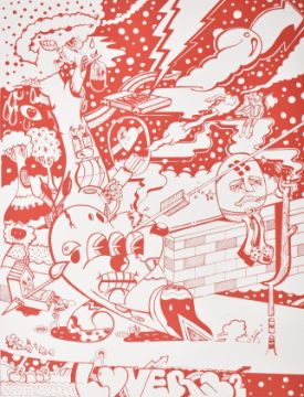 Sickboy (British, b.1980) Lovers 2, 2015 Screen print on woven paper  Signed and numbered 5/150 in pencil 72 x 58 cm (31 x 19 in) Sickboy is the name of a street artist from Bristol, UK, known for his temple logo and his 'Save the Youth' slogan. Sickboy moved to London in 2007 and his street art became prevalent particularly in the East End boroughs of Shoreditch and Tower Hamlets. It is claimed Sickboy was one of the first UK graffiti artists to use a logo instead of a 'tag'. This lot is also sold subject to Artists Resale Rights, details of which can be found in our Terms and Conditions.