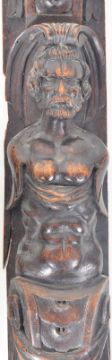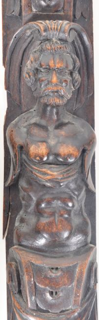 A pair of 17th Century heavily carved walnut architectural panels of Caryatids and Telamon each with their torsos showing with drapes and further decorative carved detailing. Each measures approx; 117cm tall.