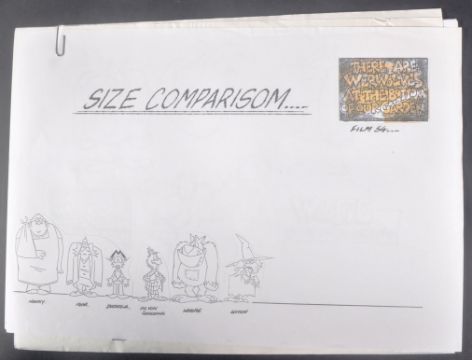 Count Duckula (1988) - Cosgrove Hall Films - There Are Werewolves At The Bottom Of Our Garden - a collection of x15 pieces of original production artwork relating to the episode. Includes; Size Comparison character model sheet, hand drawn Wolfie character model sheet, hand drawn Witch character model sheet, some storyboards and concept sequences, and other items. Mixture of hand drawn and production copies. Most A3, some other sizes.