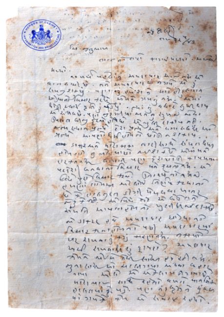 Vallabhbhai Patel (1875-1950) – Letter - a handwritten letter in Gujerati on 'Member Of Cabinet' stationery: