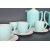 A vintage 20th century circa. 1950's Branksome china coffee service comprising of coffee pot with unusual angular lid, six coffee cups, six saucers, a milk jug and two sugar bowls. Each piece being in the manner of Poole with blue and pink colourway. Marked to base.