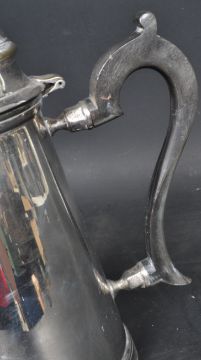 Two early 20th century silver plate coffee and hot water pots. Each having ebonised handles with ebonised finials atop the lids. Patent no. to base.