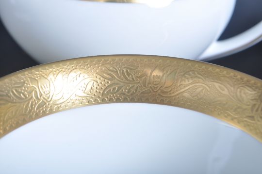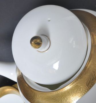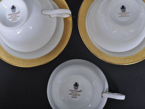 A bone chine Wedgwood Ascot tea service. Compromising of cups, saucers, tea pot, milk jug and sugar pot.