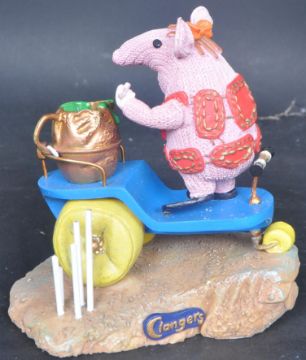 Robert Harrop – a collection of x 3 statues / figurines. To include; CL13 Tiny Clanger on the Trolley, CLS01 Major Clanger and the Rocket, CL12 Small Clanger and the Mirror. Measures 10cm tall.