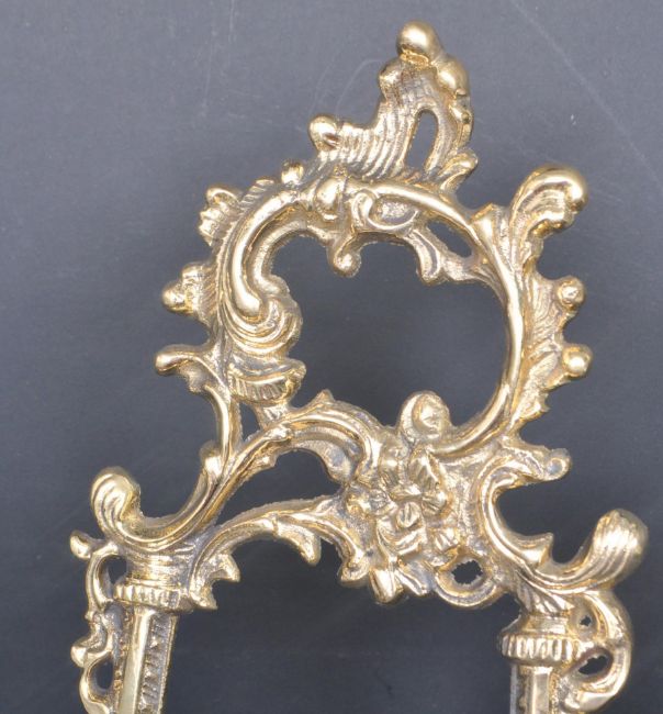 An assortment of three 20th century  brass easel picture stands having moulded rococo style decoration and being of graduating form. Tallest measures 40cm tall.