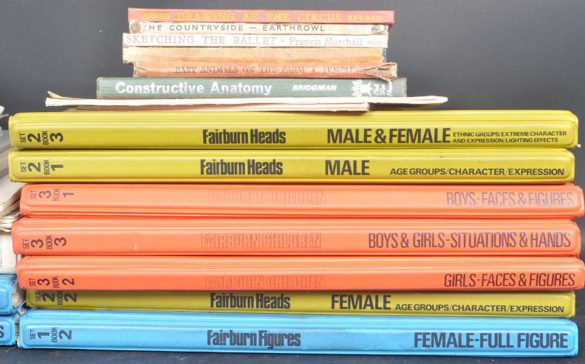 An assortment of 20th century artists anatomical life drawing reference books to include several Fairborn Figures References, The Passport by Saul Steinberg, Illustrators Reference Manual Nudes and more.