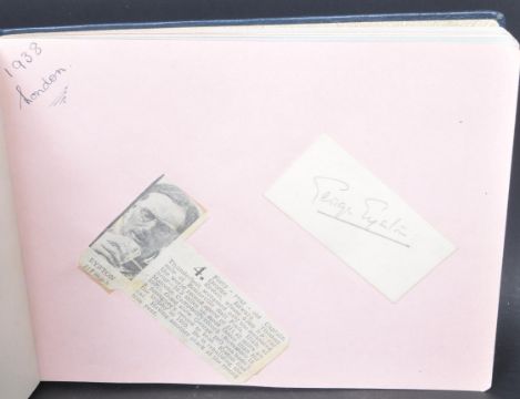Autograph Album - a 1930s autograph album, featuring signatures from various entertainers and personalities of the day. Signatures include; Jean Batten (Aviator), Tommy Trinder, Charlie Kunz, The Waters Sisters, George Eyston (Land Speed Record Breaker), Paul Robeson, John Stuart, Phil Taylor (Captain), Roy Fox, Billy Cotton, and others unidentified. All neatly laid-in to the album, many annotated where they were obtained.