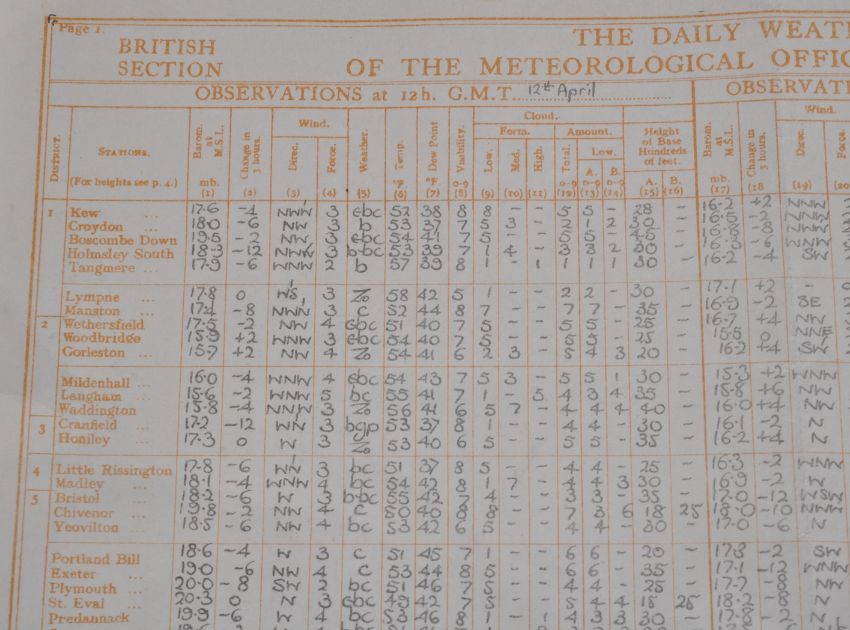Meteorological Interest - A large collection of 1946 British weather charts 'The Daily Weather Report of the Meteorological Office, Air Ministry, London'. Measures 33cm x 33cm.