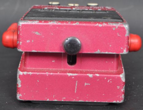 A vintage 20th century Boss Delay DM-3 guitar pedal in a red colourway.