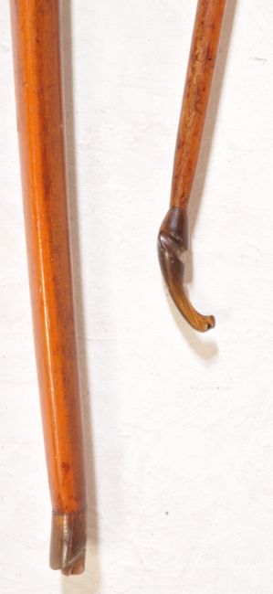 Two early 20th century ash wood archers bows, each having fabric grips to the centre. Largest measures 180cm in length.