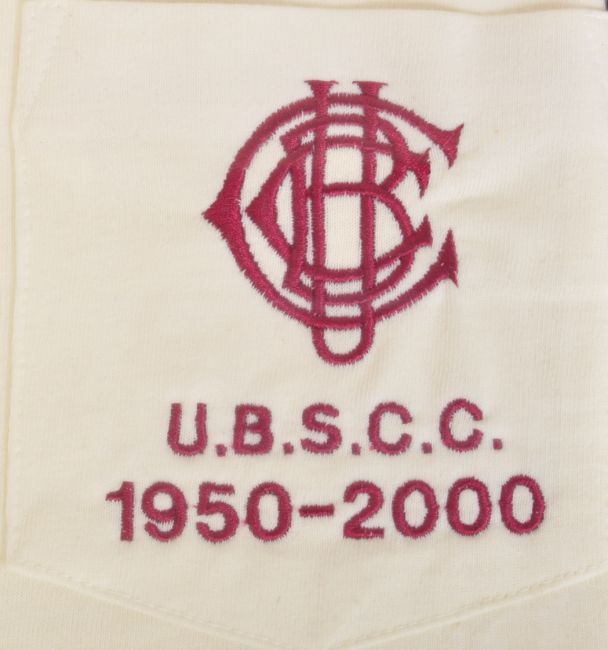 Sporting Local Interest. A 20th century framed Cricket shirt from University of Bristol Cricket Club being awarded to DJ Rees for unbroken service 1950-2000. Framed.