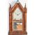 A Victorian 19th century 8 day mantel clock having a carved pediment top over a brass and enamel clock face raised on a stepped base. Together with a 19th century Victorian spire clock. Largest measures 40cm tall.