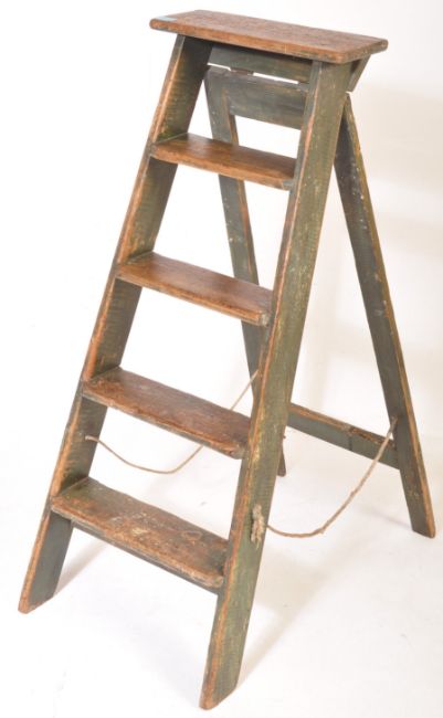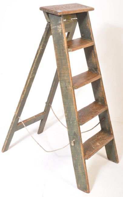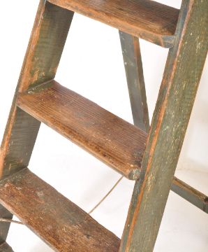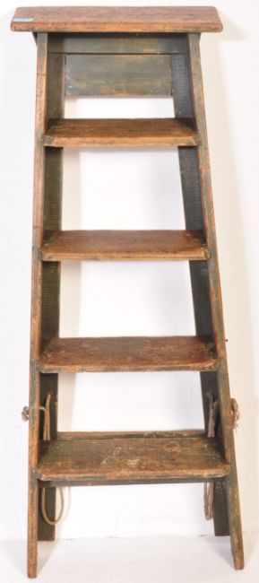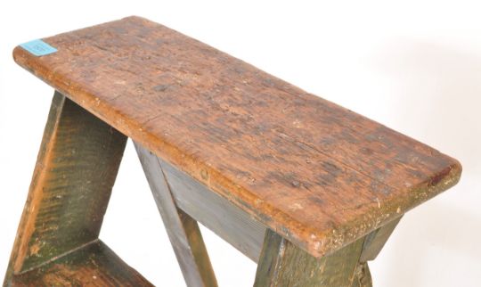 An early 20th century folding pine A frame step ladder of rustic construction. Condition report: structurally good. 117cms high.