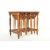 A vintage 20th century oak nest of five tables having a glass top over a chamfered edge raised on turned legs. The nest has four folding tables underneath. Measures 60cm x 85cm x 44cm.