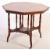 A late 19th century Victorian rosewood and marquetry inlaid centre table in the manner of Edwards & Roberts. The table being raised on turned legs with pierced gallery edge lower tier centre on stretchers. Above, a fitted frieze with octagonal top having floral spray inlaid centre. Measures 76cm x 91cm.