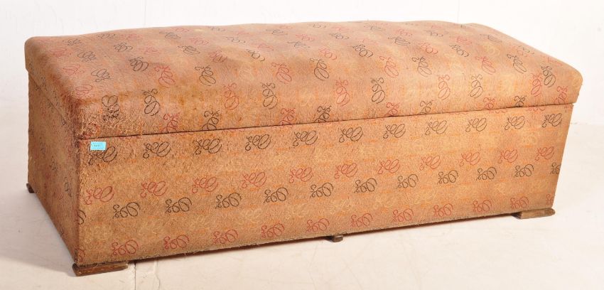 A large Victorian 19th century ottoman - blanket box being of rectangular form upholstered in a period fabric with a floral silk lined interior. Measures approx: 55cm x 156cm x 58cm
