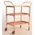 A retro vintage 20th century drinks trolley having a gilt metal tubular frame with three red tray tiers over castors. Measures approx: 79cm x 72cm x 36cm