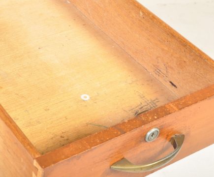 A mid 20th century circa 1940s oak pedestal writing desk having a kneehole to the left and a bank of drawers to the right. Measures approx: 76cm x 121cm x 68cm