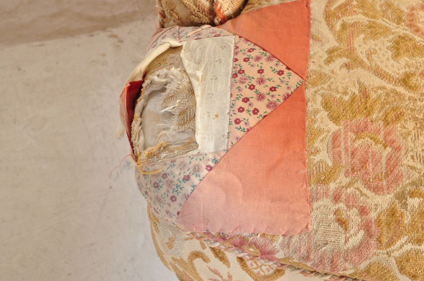 A 19th century Victorian tub / nursing chair having a chesterfield style buttoned back rest upholstered in polychrome floral decoration raised on turned legs & castors