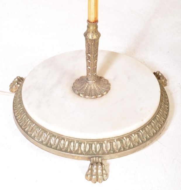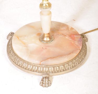Two vintage 20th century Italian marble brass and onyx standard floor standing lamps, both raised on a circular base with tripod feet.