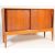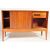 A retro vintage mid 20th century teak sideboard credenza having double sliding doors opening to reveal a shelved interior raised on upright supports. measures approx: 91cm x 147cm x 46cm