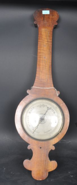 An early 19th century mahogany mercury barometer having a glazed face with lead filled numeral and lettering and decorative pierced pointers. Measures 92cm in length.