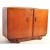 A mid century / post war Art Deco oak veneer sideboard credenza. Raised on bun feet with twin wide doors having appointed interior set within. Handles to doors of lozenge form. Measures approx: 90m x 122cm x 48cm