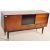 EG Gomme - G-Plan - A vintage retro mid 20th century 1960's G Plan teak veneer sideboard credenza having a pair of sliding doors with a pair of drawers beneath raised on black tapered supports. Measures approx: 77cm x 144cm x 43cm