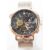 A Swan and Edgar 9134 target glider stainless steel chronograph automatic wrist watch. The watch having a round face with black dial, rose gold tone arabic numerals to the chapter ring, three subsidiary dials and tachymeter scale. Set within a rose gold tone case on a bracelet strap. Case measures 52mm. In original box.