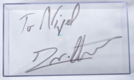 Jacques Villeneuve - Williams F1 Formula One Racing Driver - autographed Minichamps 1/43 scale precision diecast Limited Edition model of the 1997 Williams Renault F1 car. Autographed to the top in black ink, dedicated. In original box. Model Mint.