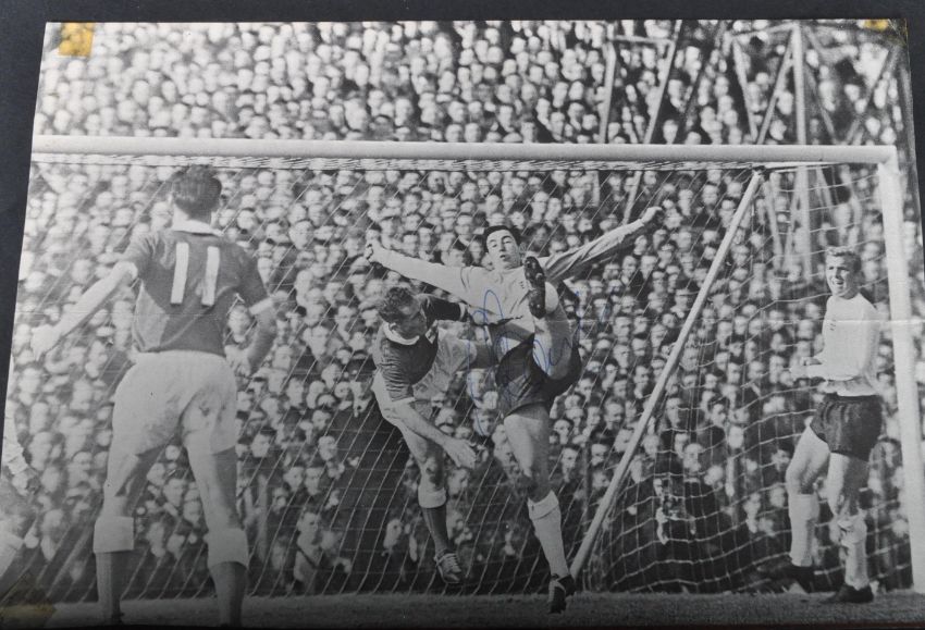 Football Autographs - World Cup 1966 - England - A collection of x8 vintage autographs on photos removed from a football album includes; Roger Hunt, Alan Ball, Gordon Banks, Geoff Hurst, Nobby Stiles, Ray Wilson & Jack Charlton.